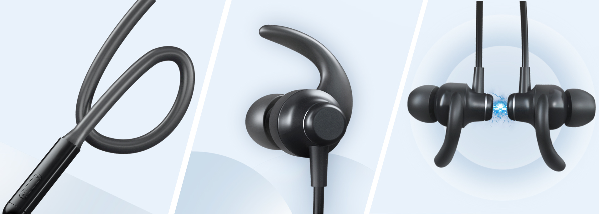 Специальная форма наушников в виде крючков обеспечивает надёжное крепление во время интенсивных тренировок.